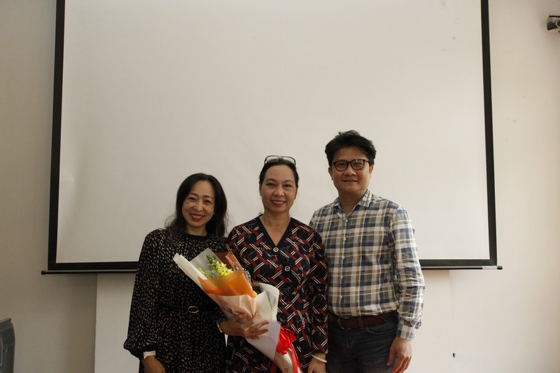 Ban chủ nhiệm Khoa Thanh nhạc trao hoa và quà cho giảng viên Cổ Tấn Thu Hương