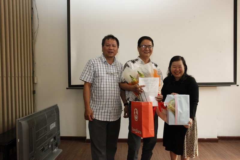 Trung tâm Biểu diễn, Thông tin Thư viện và Năng khiếu âm nhạc - Bộ phận Thư viện trao hoa và quà cho chuyên viên Nguyễn Bá Việt.