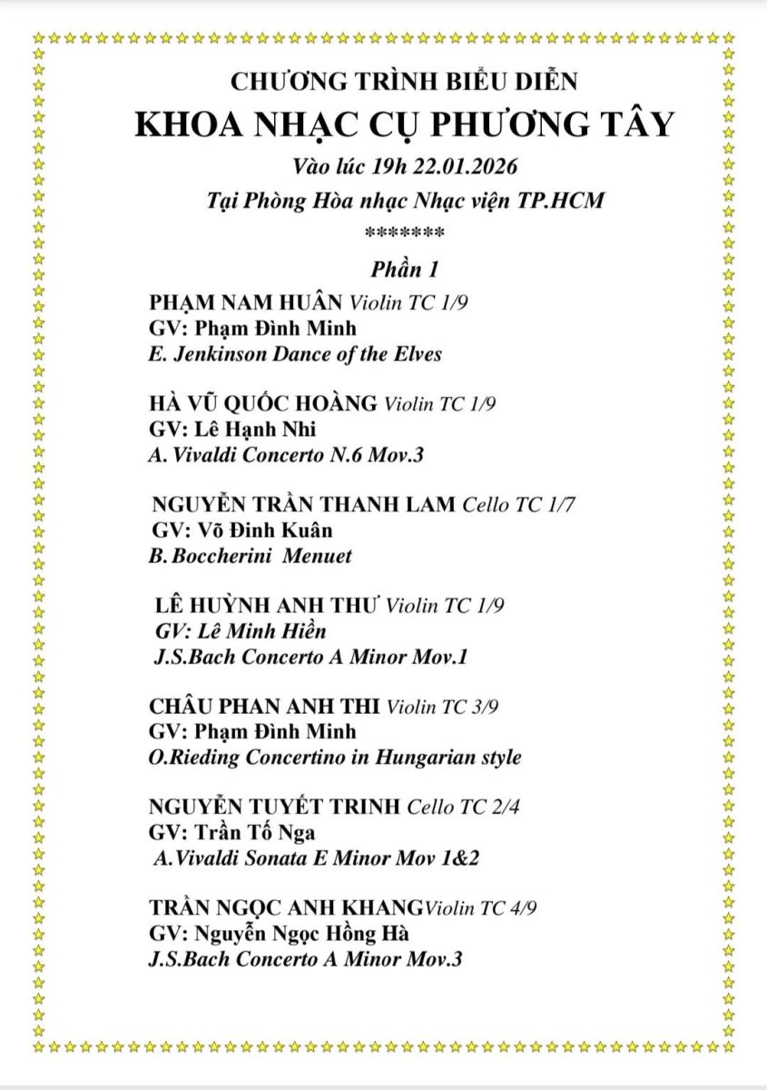 Chương trình biểu diễn học vụ tháng 01/2026 - Bộ môn Đàn dây Khoa Nhạc cụ phương Tây