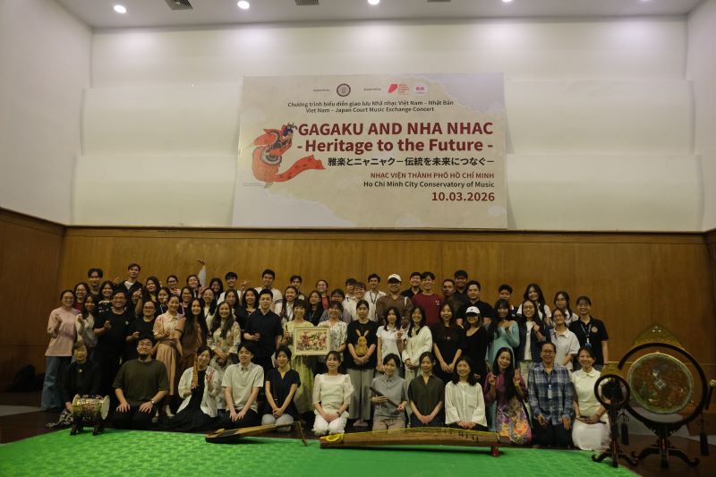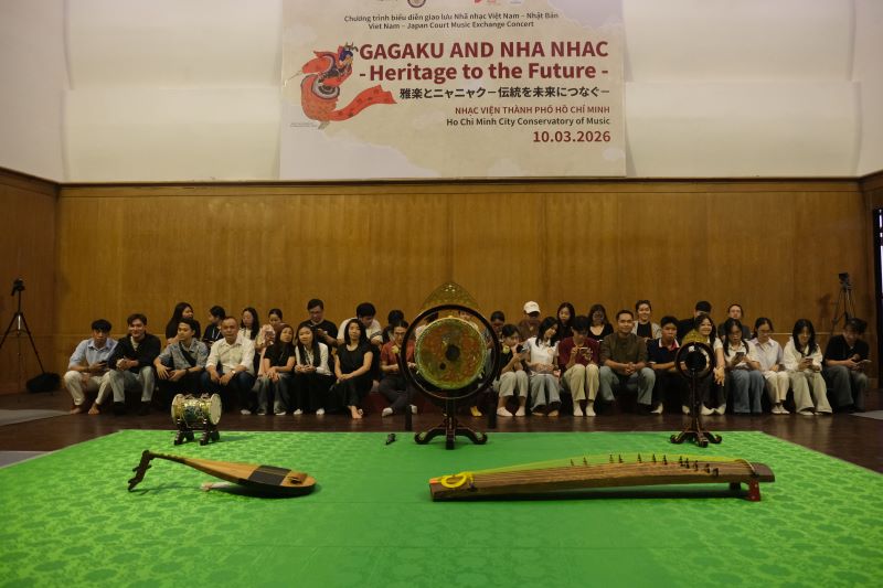 Trong khuôn khổ chương trình biểu diễn giao lưu văn hóa Nhã nhạc và Gagakư, nhóm Gagaku thuộc Dự án Quảng bá sức hấp dẫn của Âm nhạc Nhật Bản và Nhóm nhạc Khoa Âm nhạc truyền thống Nhạc viện TP. Hồ Chí Minh biểu diễn, giới thiệu về nhạc khí và kỹ thuật diễn tấu các nhạc khí sử dụng trong âm nhạc cung đình Nhật Bản và âm nhạc Việt Nam vào 14g ngày 09/3/2026 tại Phòng hòa nhạc lớn Nhạc viện TP. Hồ Chí Minh. Chương trình có sự tham dự của giảng viên, các em học sinh sinh viên Khoa Âm nhạc truyền thống Nhạc viện TP. Hồ Chí Minh và các bạn trẻ yêu nhạc.