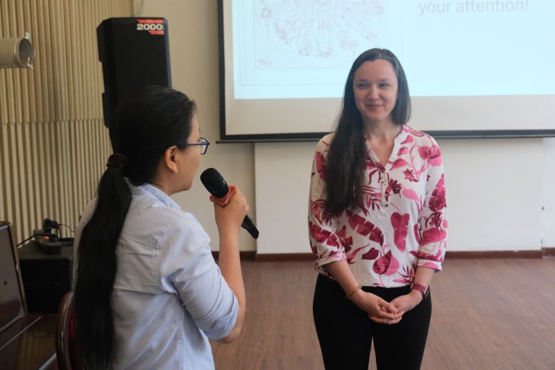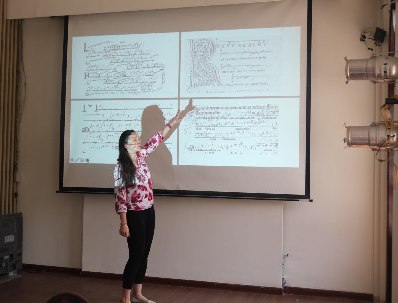 Trong nghệ thuật chỉ huy, mỗi chuyển động của người nhạc trưởng không chỉ để dẫn dắt nhịp điệu mà còn kết nối hàng chục, hàng trăm con người phối hợp nhịp nhàng tạo nên một tác phẩm âm nhạc sống động. Buổi trình bày và hướng dẫn chuyên đề về nghệ thuật chỉ huy dàn nhạc, các em học sinh sinh viên được tiếp cận góc nhìn lịch sử trong sự phát triển chuyên ngành và tìm hiểu các phong cách chỉ huy trên thế giới. TS. Daru Andrea chia sẻ những lưu ý thực hành quan trọng: cách khai thác chuyển động cơ thể, các lưu ý khi xử lý mối tương quan giữa âm nhạc và điệu nhảy trong tác phẩm dàn nhạc trong quá trình chỉ huy một tác phẩm.