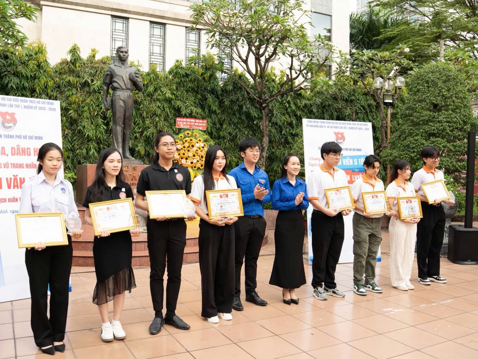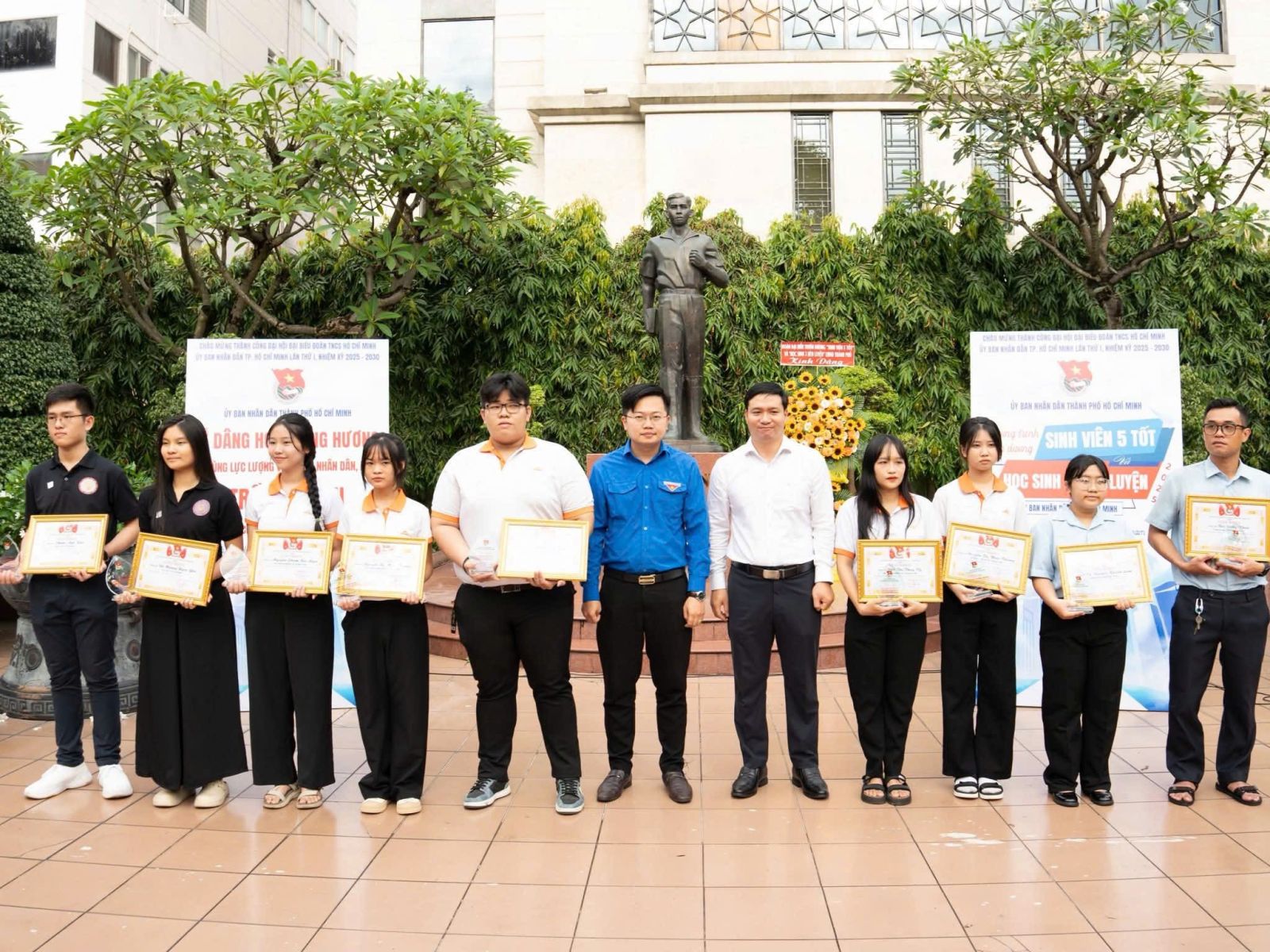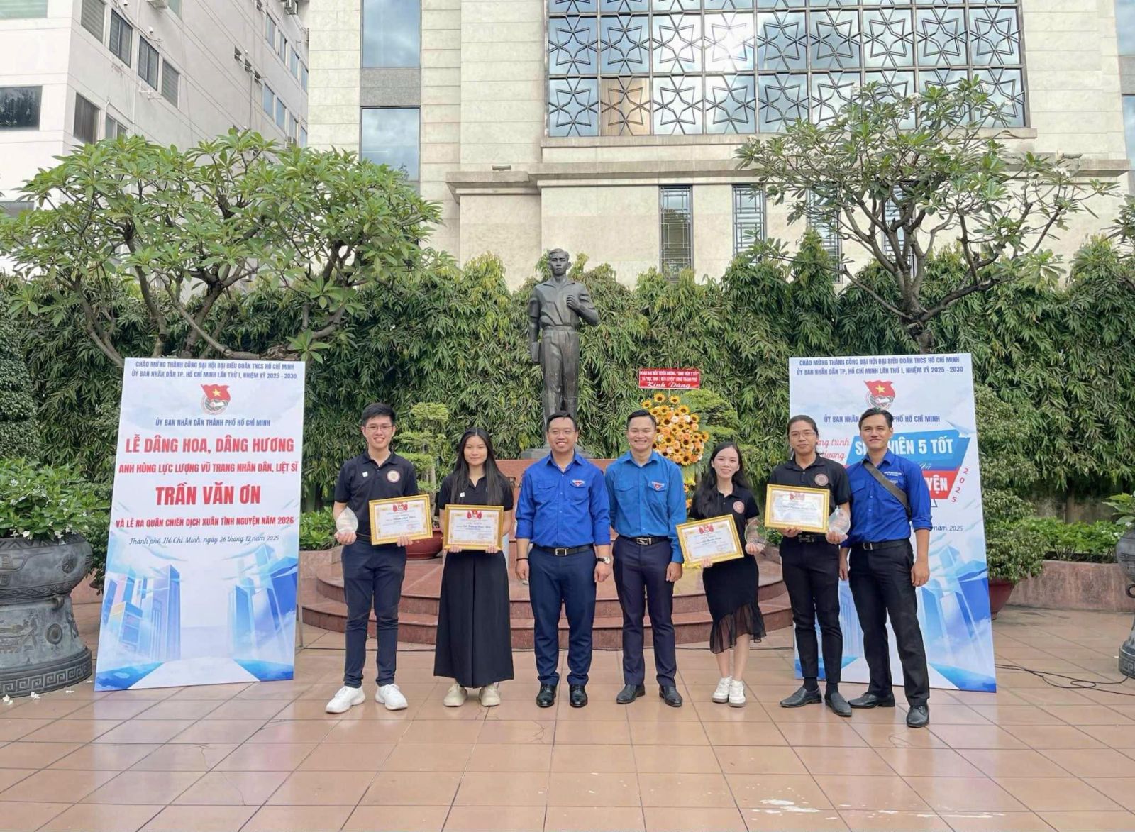 Sáng nay, ngày 26/12/2025, tại Tượng đài anh hùng Lý Tự Trọng – Công viên Bách Tùng Diệp (TP. Hồ Chí Minh), Đoàn thanh niên Nhạc viện Thành phố Hồ Chí Minh đã vinh dự có 03 sinh viên đạt danh hiệu “Sinh viên 5 tốt” (Vương Quốc Anh, Phan Nguyễn Trọng Nhân, Lý Hoàn Trân) và 02 học sinh đạt danh hiệu “Học sinh 3 rèn luyện” (Đỗ Hoàng Ngọc Yên, Phạm Anh Khôi) được tuyên dương trong khuôn khổ Chương trình tuyên dương “Sinh viên 5 tốt” và “Học sinh 3 rèn luyện” Đoàn thanh niên Ủy ban nhân dân Thành phố năm 2025.
