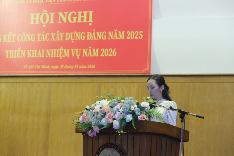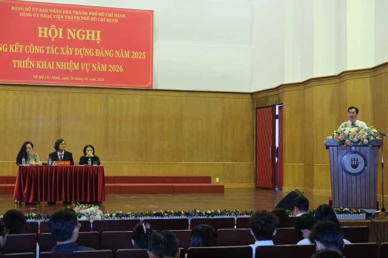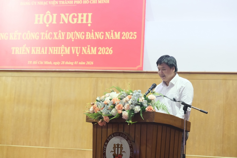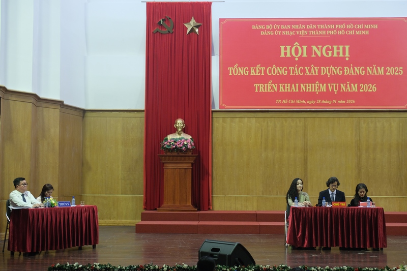 13g30 ngày 28/01/2026, Đảng ủy Nhạc viện TP. Hồ Chí Minh tổ chức Hội nghị Tổng kết công tác xây dựng Đảng năm 2025 và Triển khai nhiệm vụ năm 2026 tại Hội trường A Nhạc viện TP. Hồ Chí Minh.
