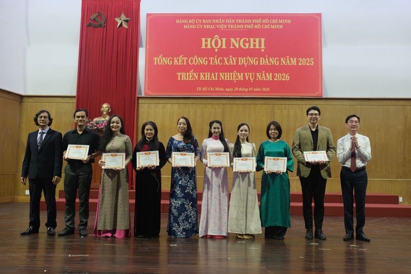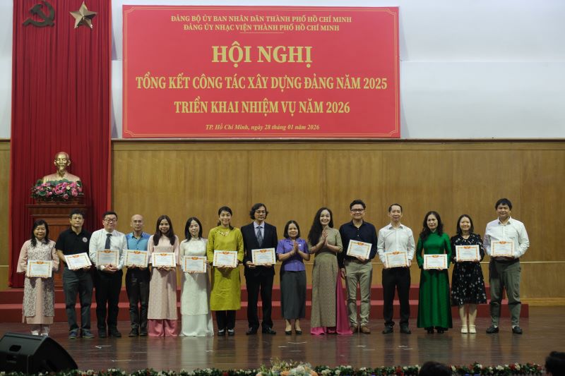 Chương trình Hội nghị khép lại với phần khen thưởng cho 01 tập thể, và 09 Đảng viên Hoàn thành xuất sắc nhiệm vụ trong năm 2025 và khen thưởng 4 chi bộ và 15 Đảng viên có đóng góp tích cực trong công tác xây dựng Đảng bộ Nhạc viện TP. Hồ Chí Minh năm 2025.