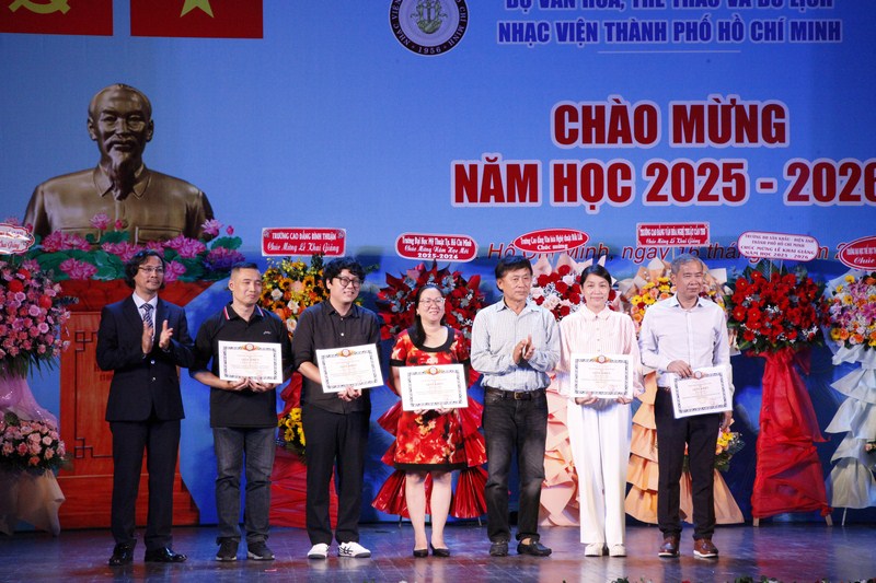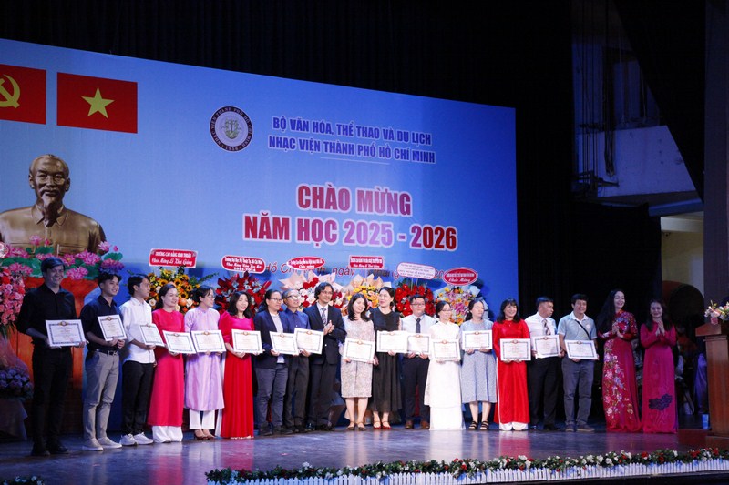 Trong không khí rộn rã của buổi lễ, Nhạc viện TP. Hồ Chí Minh cũng trao các giấy khen biểu dương thành tích đạt được của các giảng viên, HS-SV trong năm học vừa qua.
