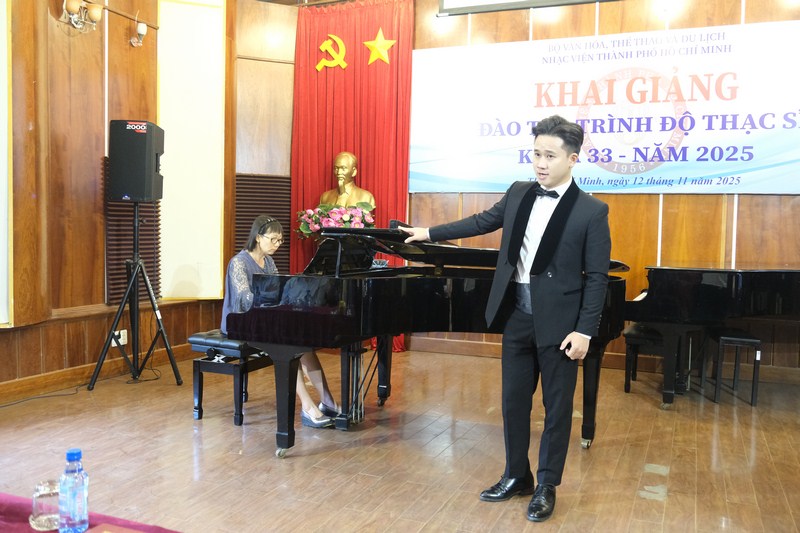 14g30 ngày 12/11/2025, Nhạc viện TP. Hồ Chí Minh tổ chức Lễ khai giảng đào tạo trình độ Thạc sĩ khóa 33 tại Hội trường B Nhạc viện TP. Hồ Chí Minh.