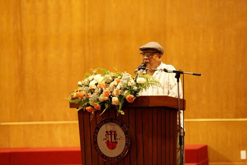Giảng viên Đỗ Tân Việt phát biểu, điểm qua một số gương mặt nghệ sĩ tuổi Bính Ngọ nhân dịp đầu xuân Bính Ngọ 2026