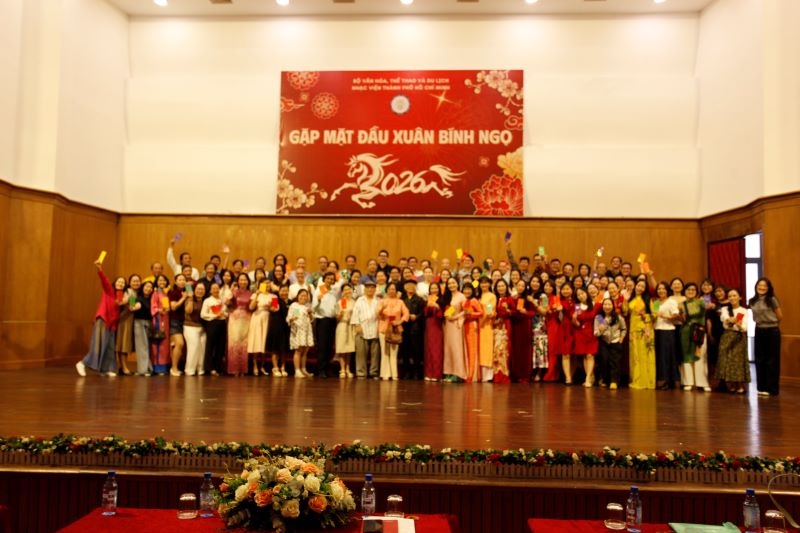 Mừng xuân Bính Ngọ 2026, Ban giám đốc cùng toàn thể cán bộ, giảng viên, nhân viên Nhạc viện TP. Hồ Chí Minh gặp mặt đầu xuân mới vào 09g ngày 25/2/2026 tại Phòng hòa nhạc Nhạc viện TP. Hồ Chí Minh. Buổi gặp mặt là dịp họp mặt đầu xuân mới, gặp gỡ các giảng viên lão thành và gửi đến nhau những phong bì may mắn, những lời chúc sức khỏe, hạnh phúc và thành công.