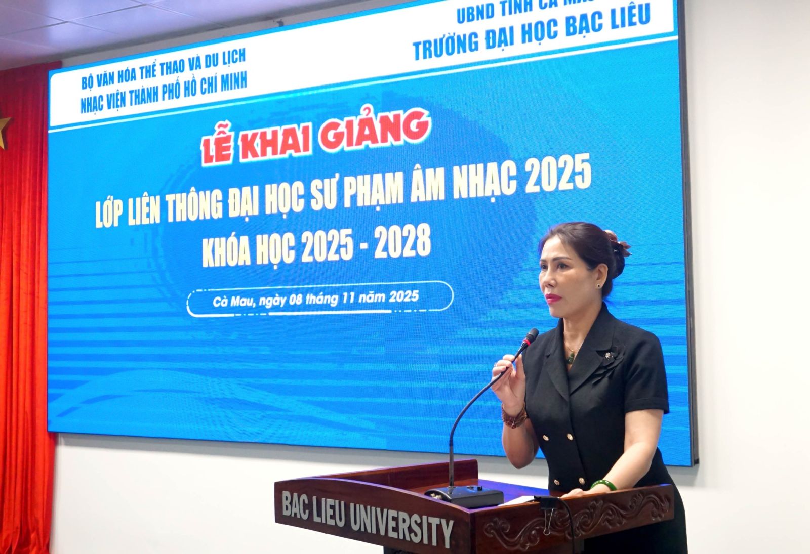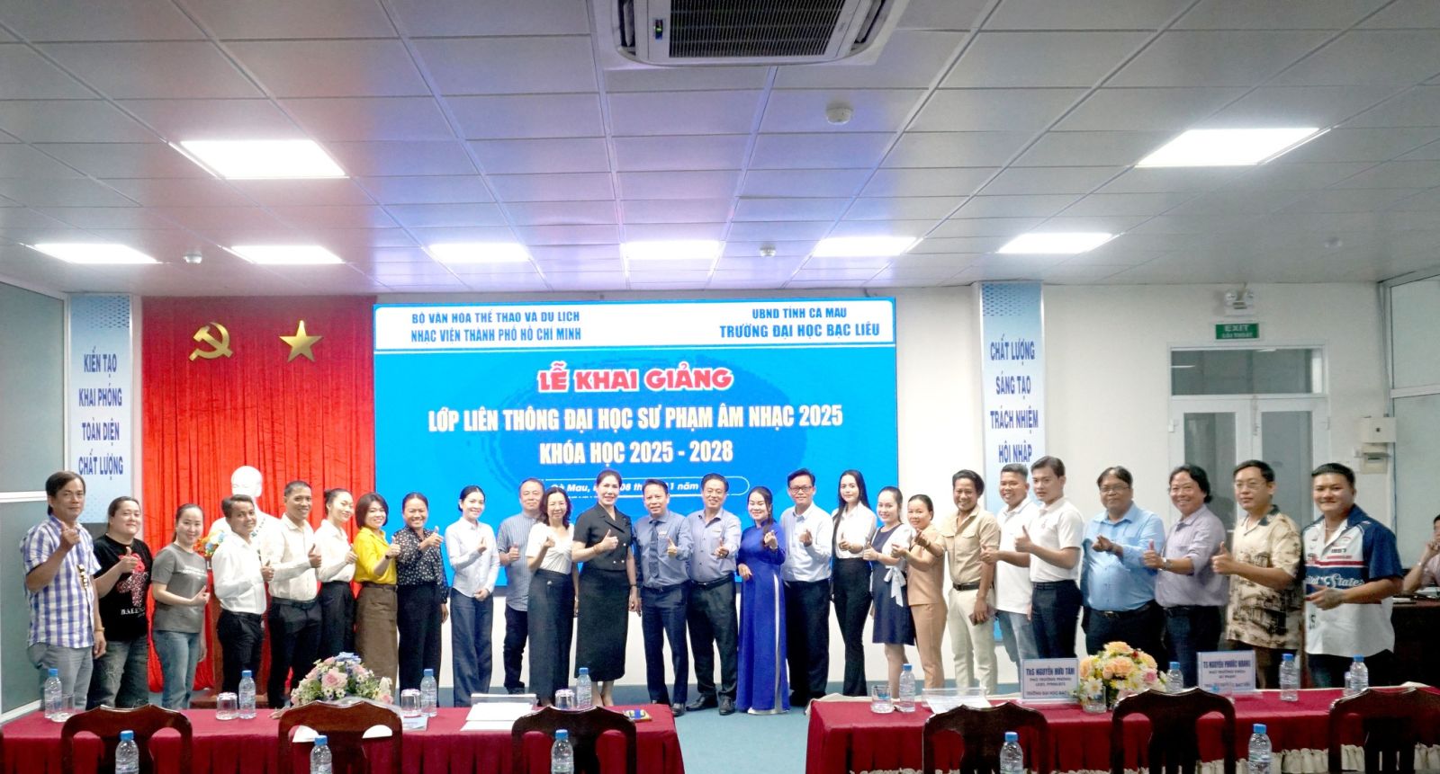 Chiều ngày 08/11/2025, tại Trường Đại học Bạc Liêu tỉnh Cà Mau, Nhạc viện TP. Hồ Chí Minh phối hợp cùng Trường Đại học Bạc Liêu tổ chức Lễ khai giảng lớp Đào tạo liên thông bậc Đại học ngành Sư phạm Âm nhạc.